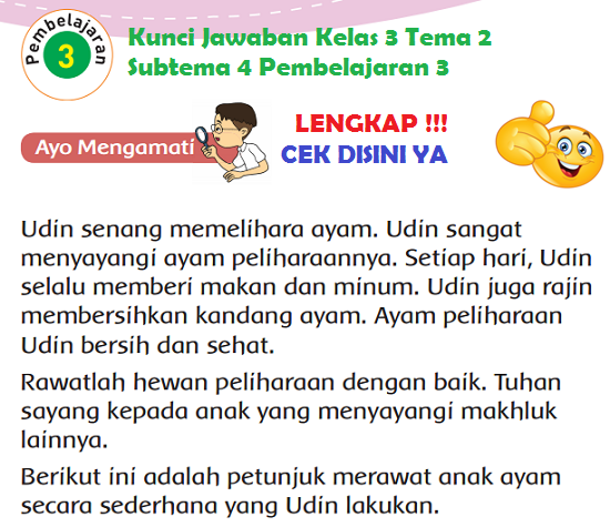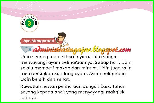 Pada tema 3 ini memiliki judul menyayangi tumbuhan dan hewan, subtema 4 tentang menyayangi hewan.